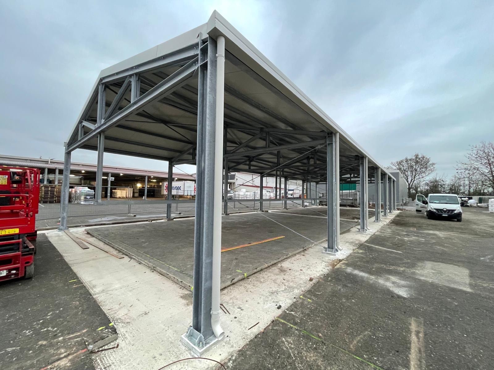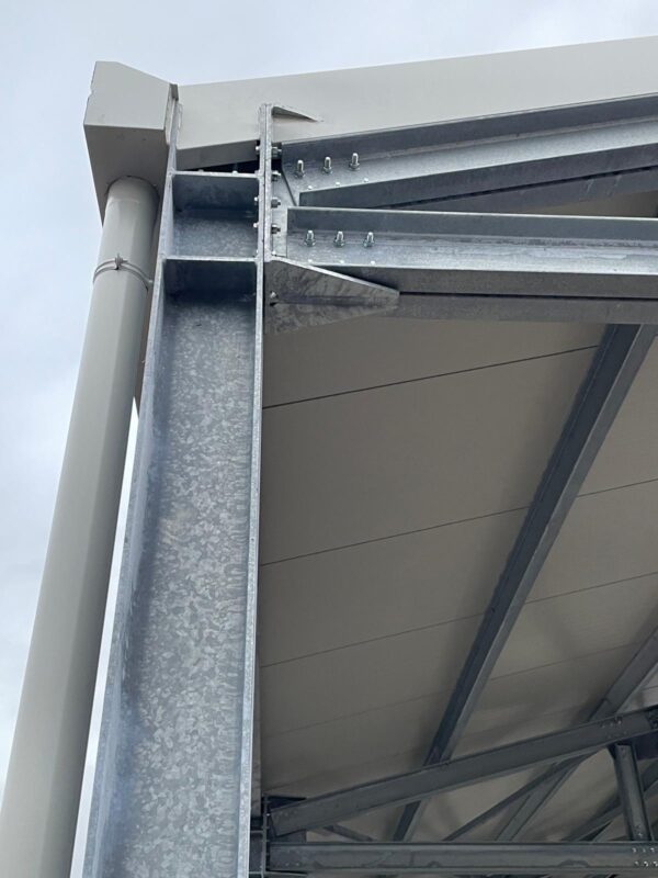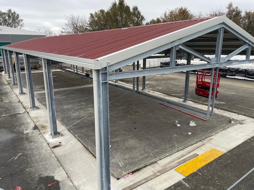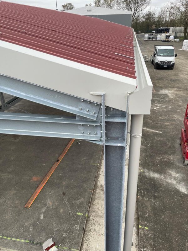 Progettazione e realizzazione di un capannone, Dim.30mx10mx6H, peso 17 ton. Trattato con zincatura a caldo secondo normativa ENISO 1461, metodo di costruzione EXC2 secondo norma EN 1090-2.