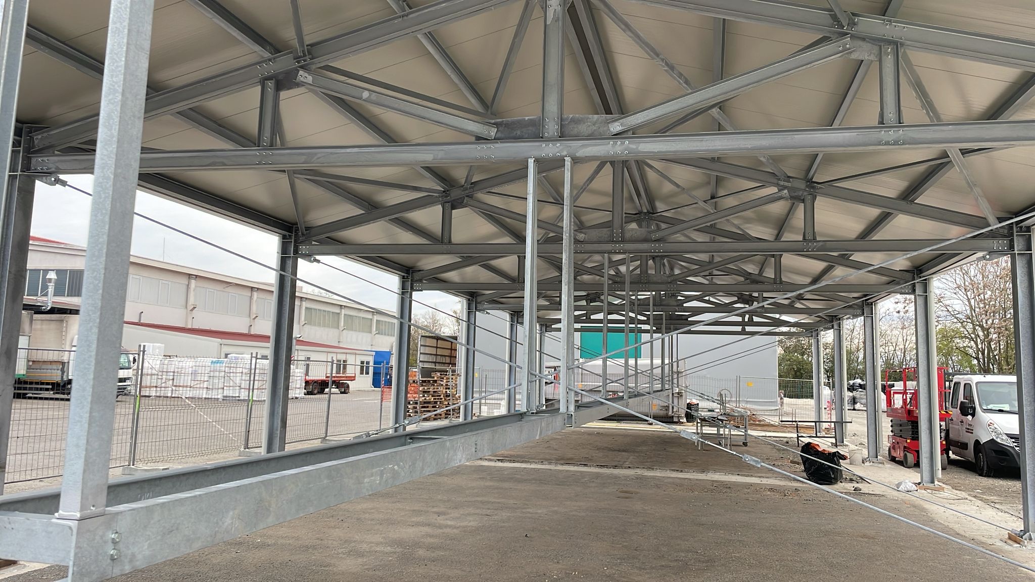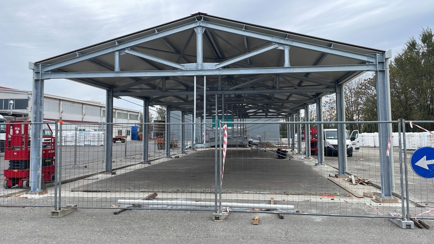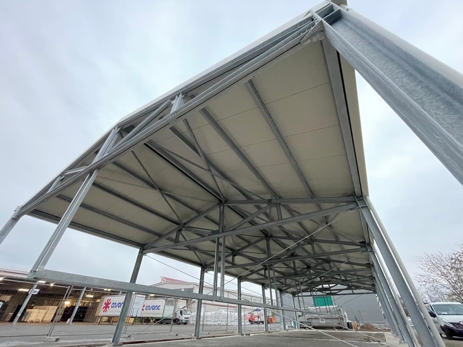 Progettazione e realizzazione di un capannone, Dim.30mx10mx6H, peso 17 ton. Trattato con zincatura a caldo secondo normativa ENISO 1461, metodo di costruzione EXC2 secondo norma EN 1090-2.
